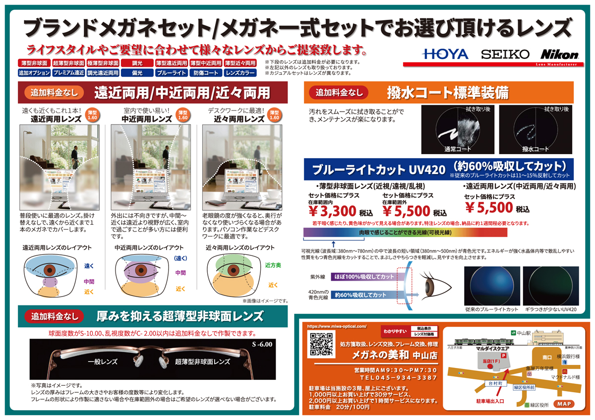 ●処方箋取扱 ●レンズ交換 ●フレーム交換 ●修理 ●現金/クレジットカード取扱